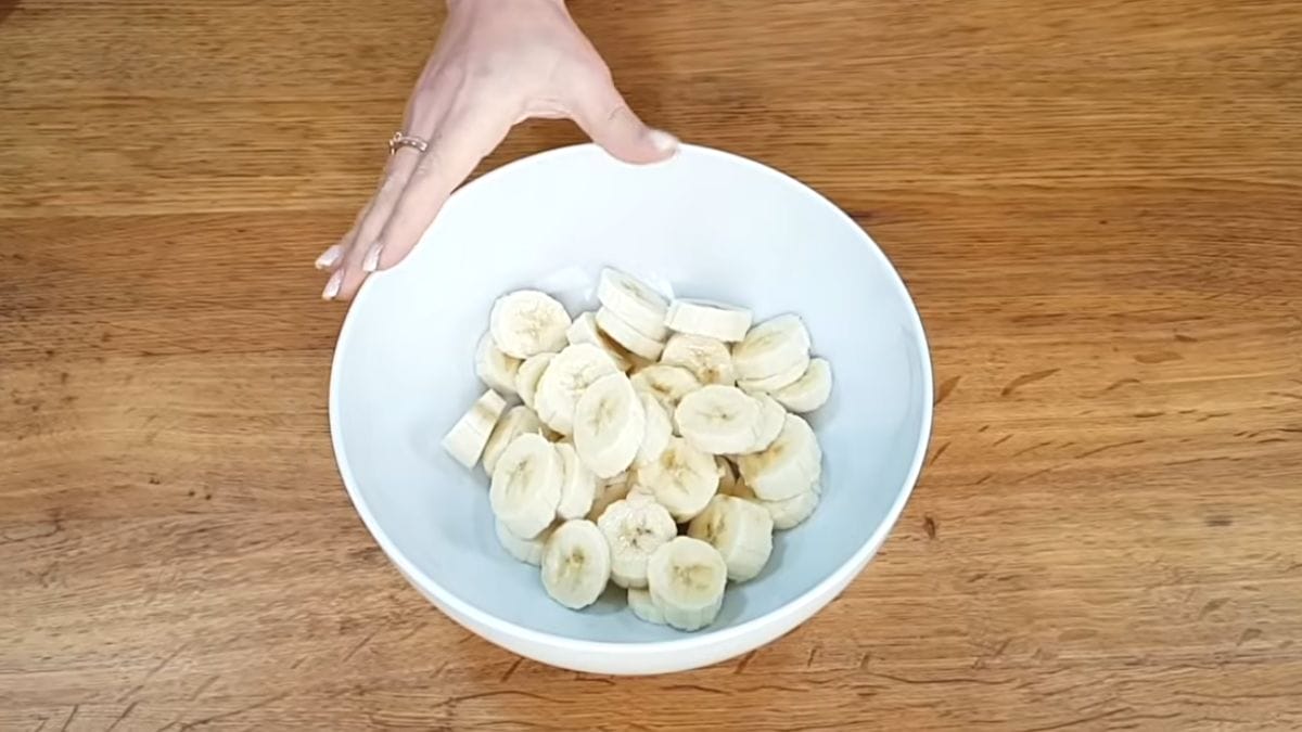 - Leve ao micro-ondas por 30 segundos e depois acrescente no recipiente com as bananas;