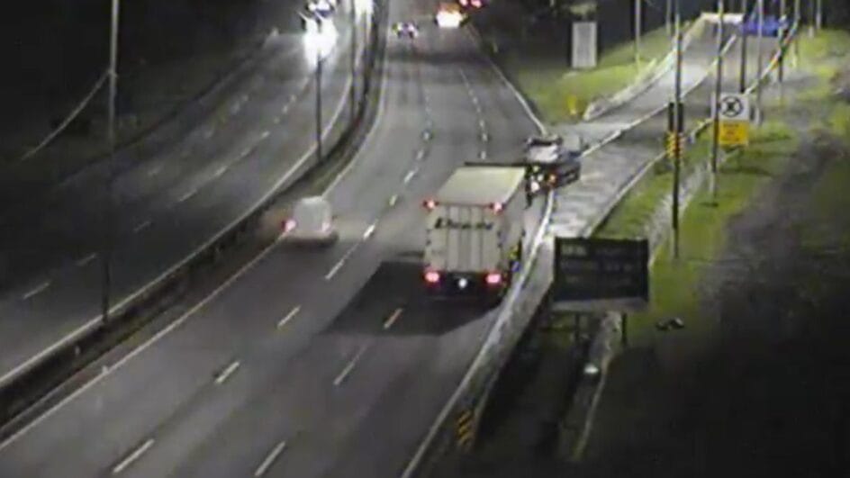Um caminhão sem freios precisou cortar a frente de outro veículo para conseguir entrar em uma das áreas de escape da BR-376 e evitar um acidente. O caso aconteceu por volta das 23h de quarta-feira (2) e foi flagrado pela câmera de segurança da Arteris Litoral Sul, instalada na rodovia.