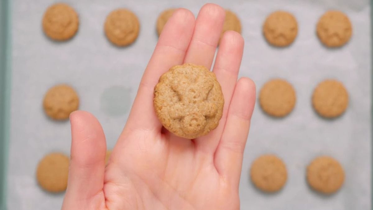 Forme bolinhas de 1 colher de chá, achate levemente e disponha em assadeira forrada com papel-manteiga. Asse em forno preé-aquecido a 180°C por 12 ou 15 minutos, até dourar nas bordas.