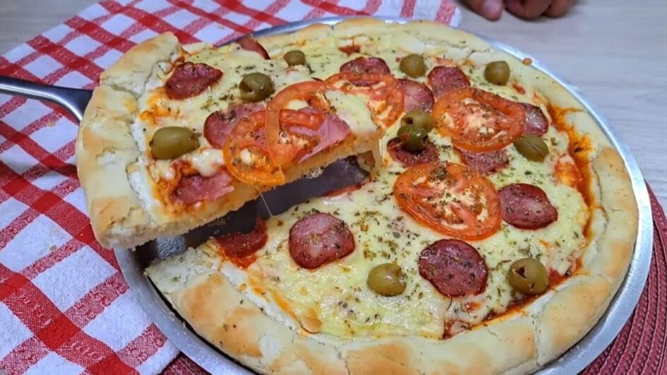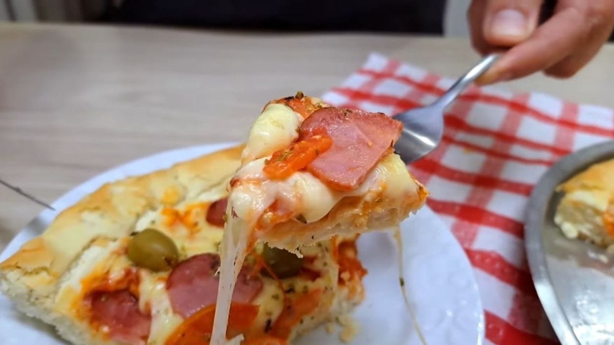 O passo a passo foi ensinado no canal do Youtube Nossa Cozinha. No vídeo, que já conta com mais de 180 mil visualizações, o cozinheiro explica como fazer essa pizza caseira de forma simples e prática.