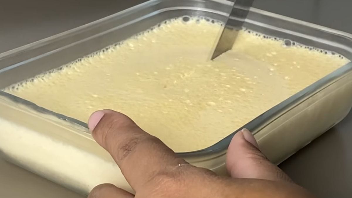 - Despeje a mistura em uma travessa (o ideal é uma de aproximadamente 1 litro);