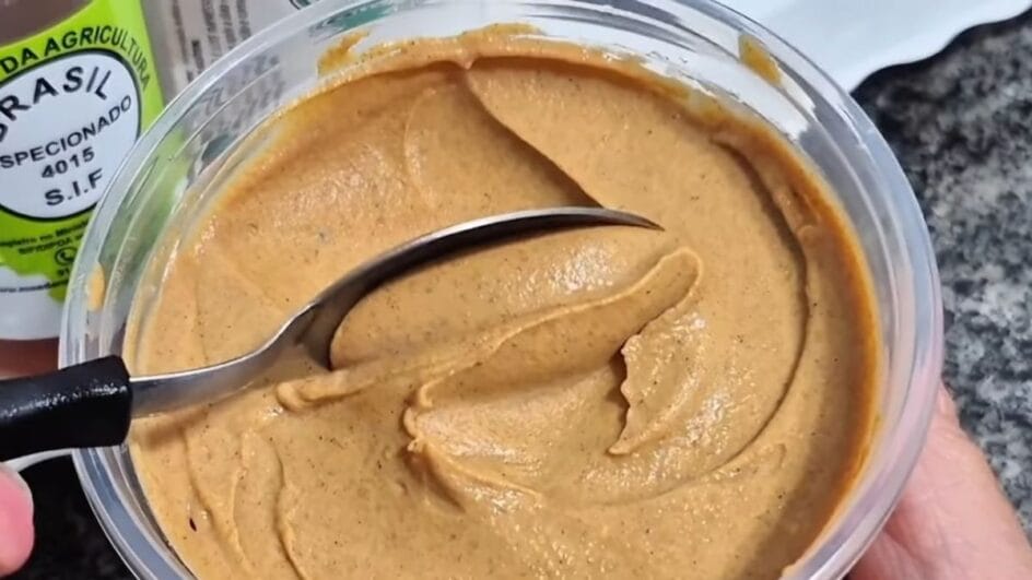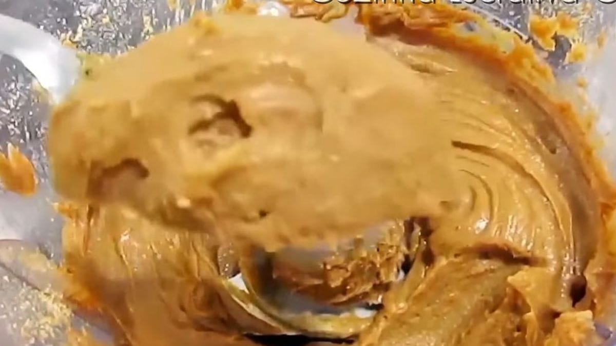 Em seguida, adicione 120ml de água ou leite quente e bata até obter uma mistura cremosa e uniforme. Se necessário, adicione mais 30ml de água para ajustar a textura.
