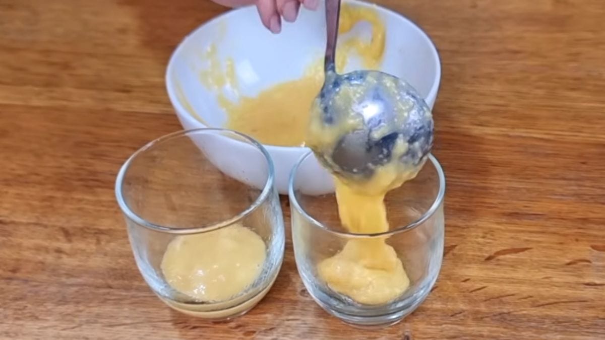 - Divida a massa em dois potinhos e leve ao micro-ondas por aproximadamente dois minutos.