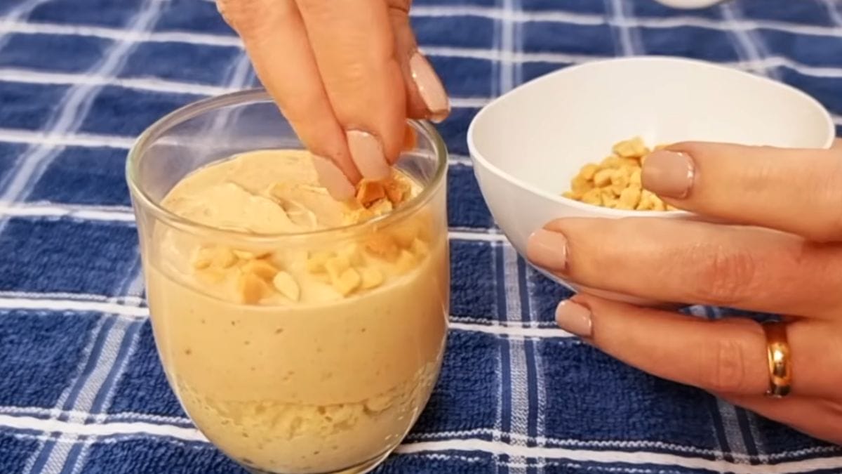 - Toque final de textura: para um resultado mais sofisticado e com contrastes de textura, finalize com amendoim torrado picadinho por cima do creme. Isso transforma o lanche em algo que, segundo a nutricionista, não parece ser uma opção saudável.