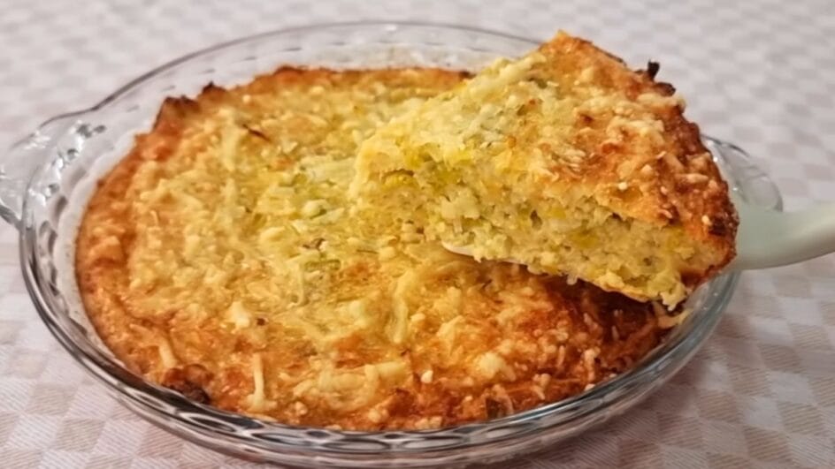 Primeiro, doure o alho poró em uma panela. Agora, misture os ovos com o leite e o sal. Acrescente o fermento e o queijo ralado.