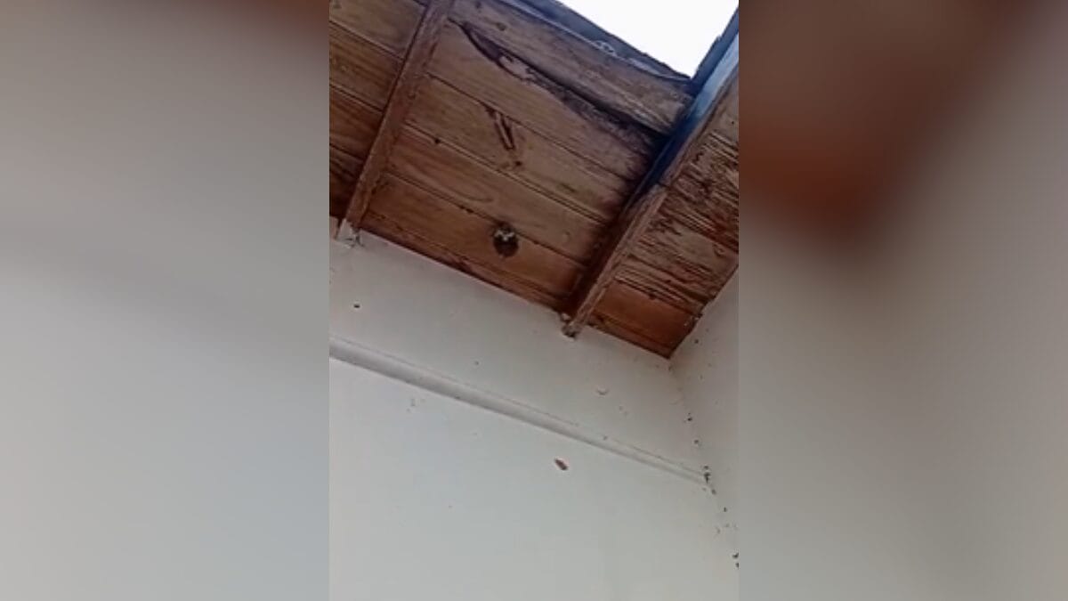 A guarnição foi acionada pouco antes das 14h, na Servidão Romeu Joaquim Antunes. Um vídeo mostra pelo menos 10 cachopas, popularmente conhecidos como ninhos, de vespas penduradas tanto no telhado de madeira quanto no suporte de ar-condicionado do local.