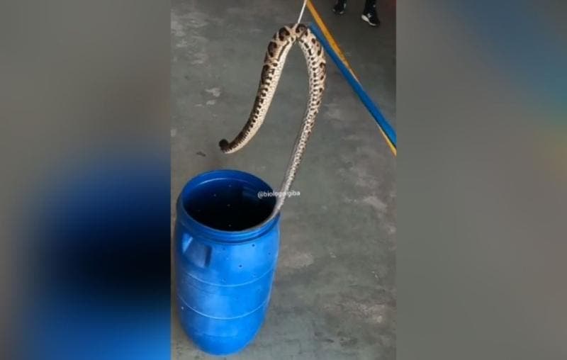 De acordo com o biólogo da Fundação Jaraguaense de Meio Ambiente (Fujama), Gilberto Ademar Duwe, o animal foi resgatado pelos Bombeiros Voluntários no sábado (23). Já na segunda-feira (25), foi encaminhado para a fundação, onde ficou junto com outras cobras.