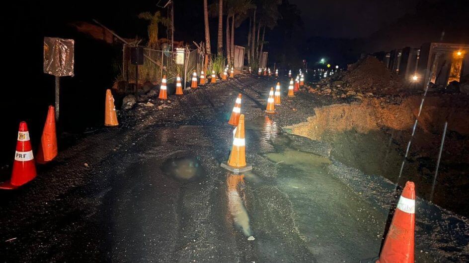 A primeira ocorrência de maior impacto registrada na BR-280 foi em dezembro de 2022, quando uma cratera se abriu e dividiu a pista ao meio no Km 97. Por causa disso, a rota ficou interditada entre os Kms 84 e 111.