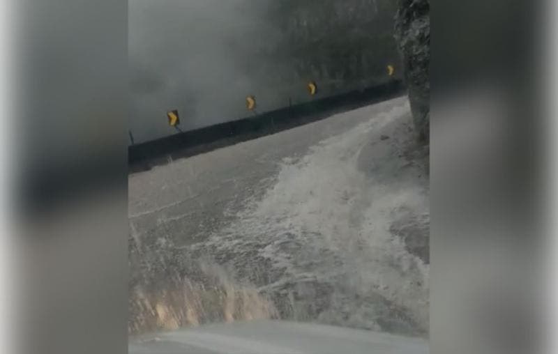 A chuva invadiu a pista da rodovia SC-390, na Serra do Rio do Rastro, na tarde desta quarta-feira (4) e provocou imagens impressionantes. O intenso fluxo de água fez com que a rodovia se transformasse em um verdadeiro rio entre os Kms 404 e 407.