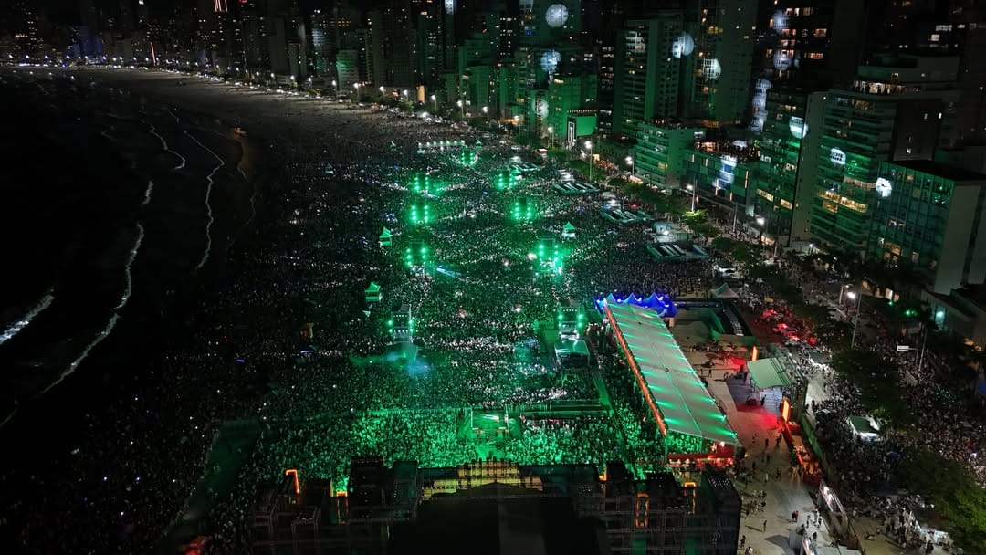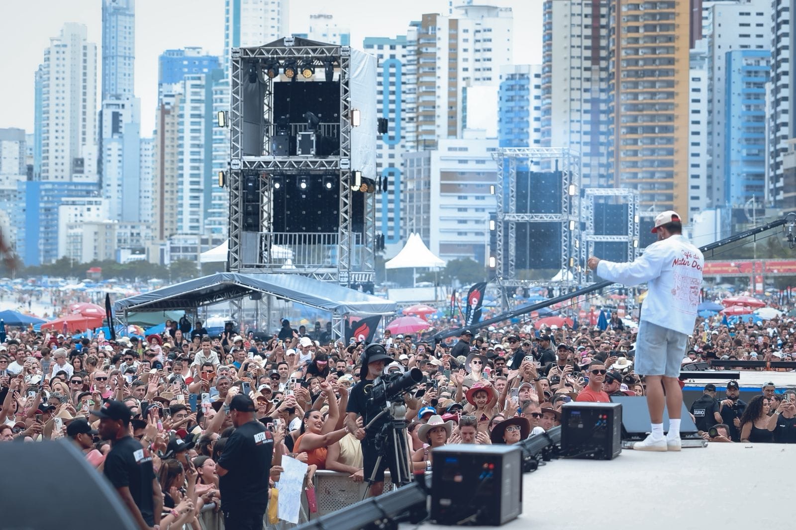 Cerca de 350 mil pessoas estiveram na Praia Central de Balneário Camboriú neste sábado (14) para assistir ao show Agroplay Verão, que teve como atração principal a cantora Ana Castela. O ex-namorado dela, Zé Felipe, também se apresentou, mas os dois não chegaram a dividir o palco. A estrutura para a apresentação foi montada no Pontal Norte, perto da roda-gigante, e as fotos mostram a orla tomada pela multidão. O influenciador coreano Sunghoon Jang, conhecido como Hooni, também marcou presença.