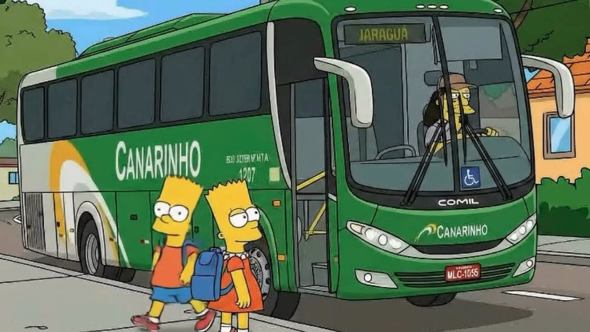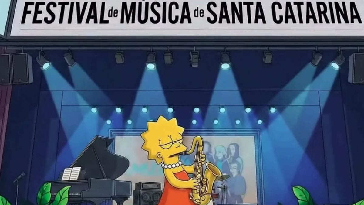 Já a pequena Lisa brilhou no palco do Festival de Música de Santa Catarina, na Sociedade Cultura Artística (Scar) de Jaraguá do Sul, redesenhada com Inteligência Artificial (IA). Enquanto isso, Bart Simpson anda de skate em frente à prefeitura e até pega uma das linhas do tradicional ônibus verde do transporte coletivo.
