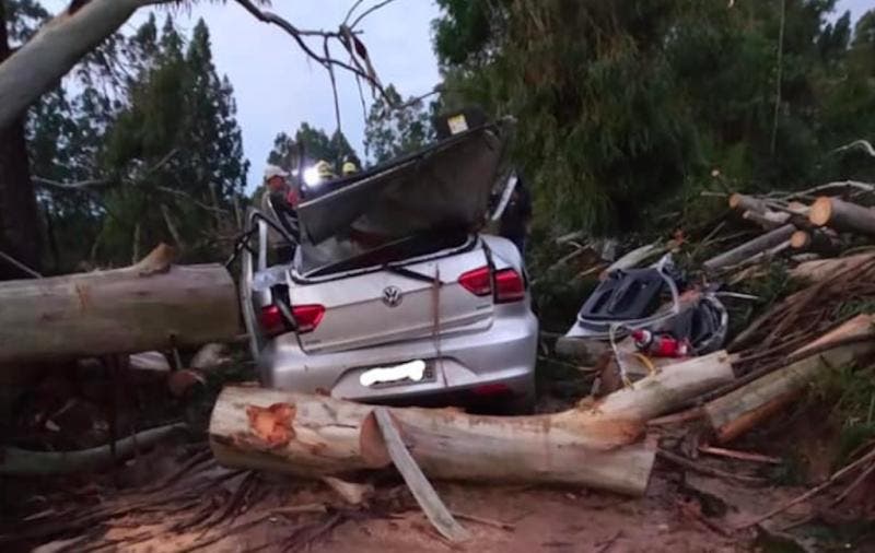 — Itaiópolis é uma cidade pequena, mas tem muitos moradores na zona rural. Por isso, fomos até uma localidade do interior, a cerca de 27 quilômetros do centro da cidade, e estávamos fazendo o caminho de volta. Foi quando eu ouvi o estouro da árvore caindo sobre o carro e vi o clarão de quando passou pela fiação elétrica — recorda Alex.