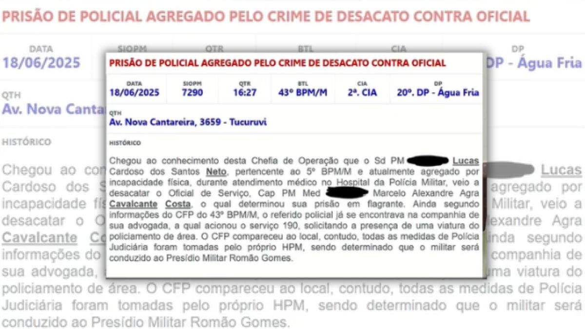 O soldado da Polícia Militar (PM) Lucas Neto foi preso durante uma consulta por, supostamente, desrespeitar um médico capitão do Hospital da Polícia Militar. Segundo o boletim de ocorrência obtido pelo g1, o soldado teria se referido ao capitão como “você”. O caso aconteceu na tarde de quarta-feira (18) em São Paulo.