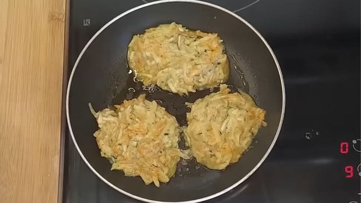 Coloque porções da massa na frigideira, achatando delicadamente para formar pequenos bolinhos ou discos. Tampe a frigideira para que os legumes cozinhem por dentro, mantendo a umidade.