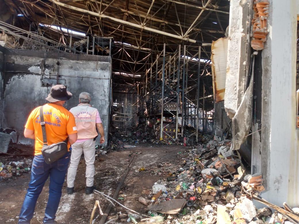 Imagens impressionantes mostram destruição do Fort Atacadista após incêndio em Florianópolis