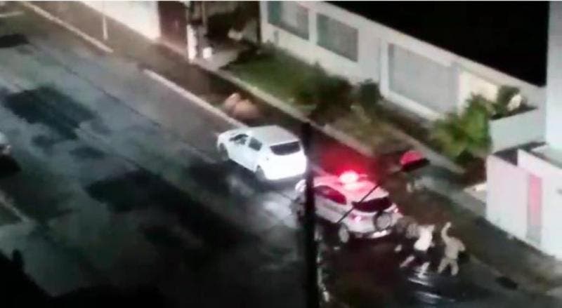 Testemunhas filmaram a agressão. A imagem mostra o homem já no chão – aparentemente alterado – tentando se desvencilhar dos policiais (com alguns chutes e empurrões) para não ser algemado. Cerca de um minuto depois, o homem consegue afastar os policiais e acerta o braço em um deles.
