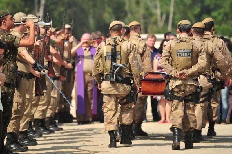 Corpo de policial morto dentro de estabelecimento comercial é sepultado em Joinville