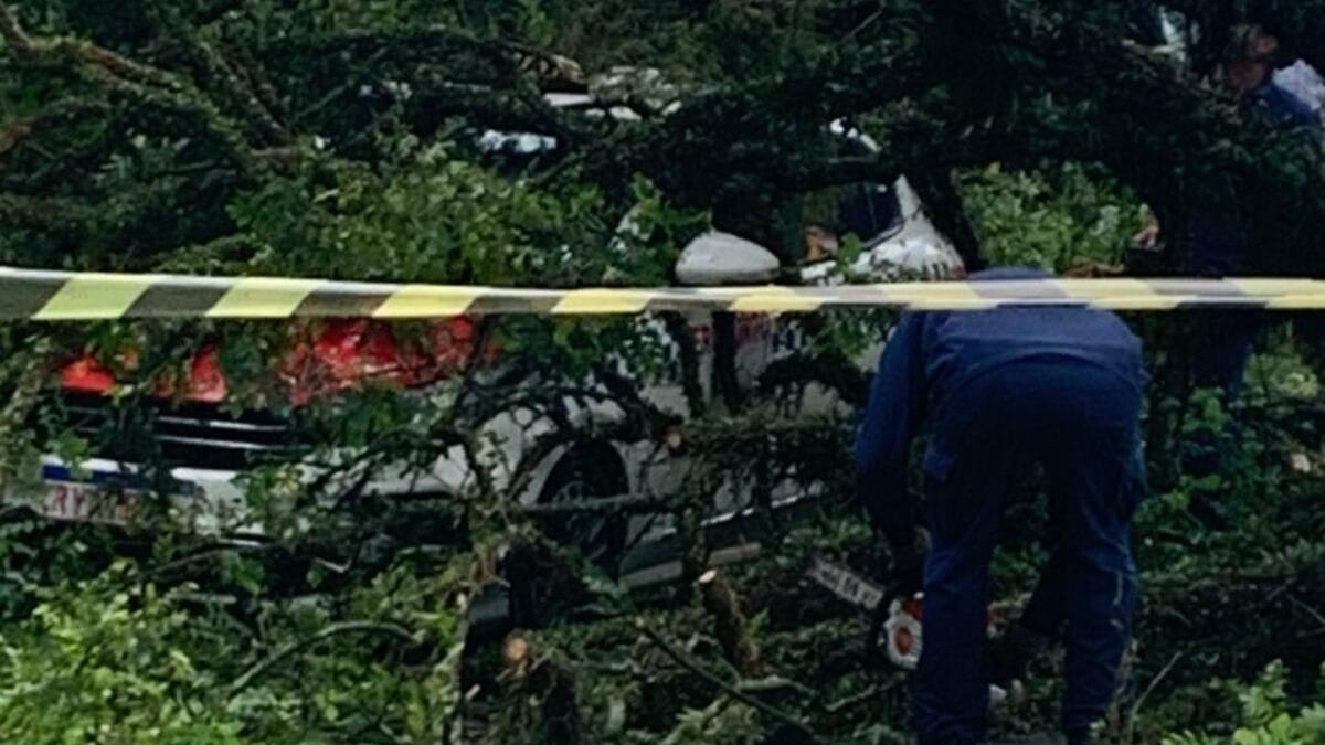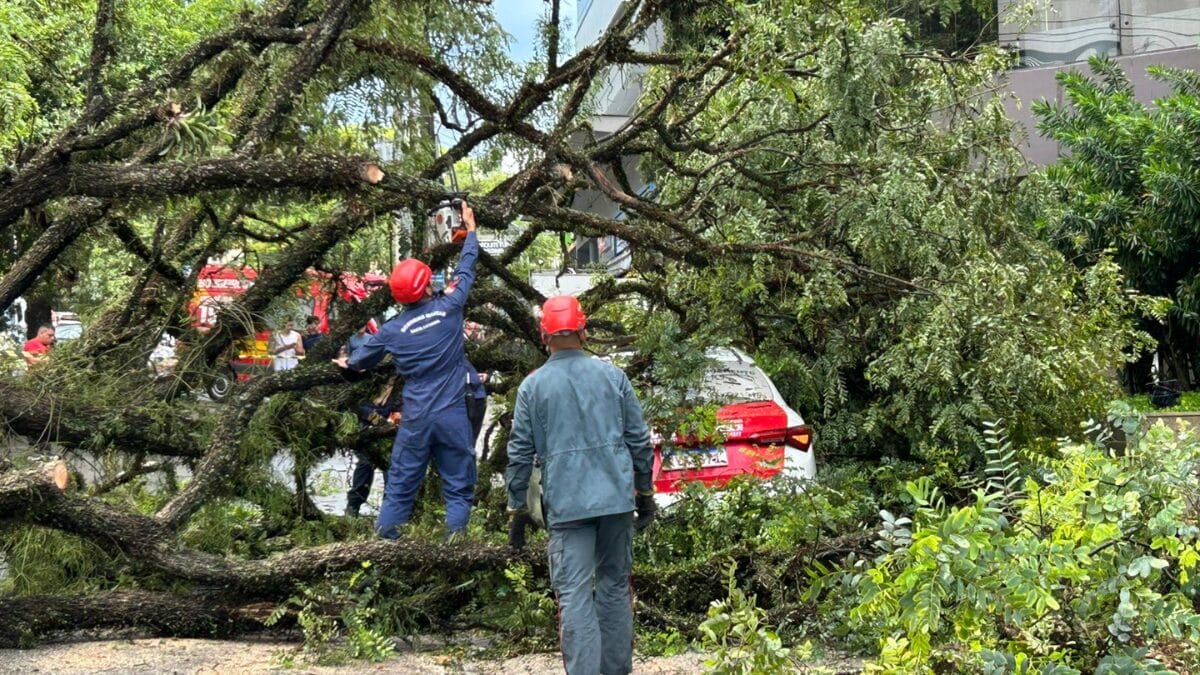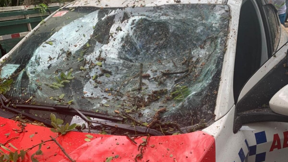 Os galhos da árvore caíram principalmente no teto do carro e no para-brisa. Felizmente, Julian não foi atingido, mas o susto, segundo ele, foi grande.