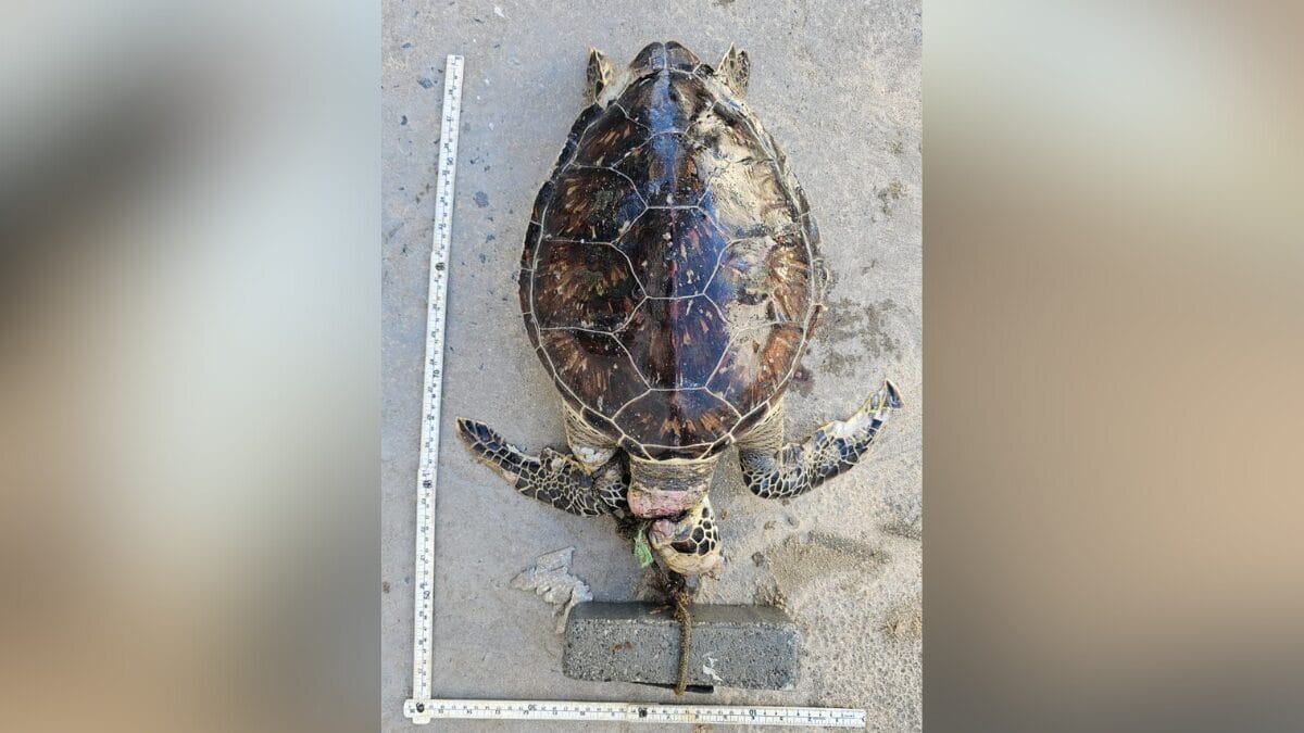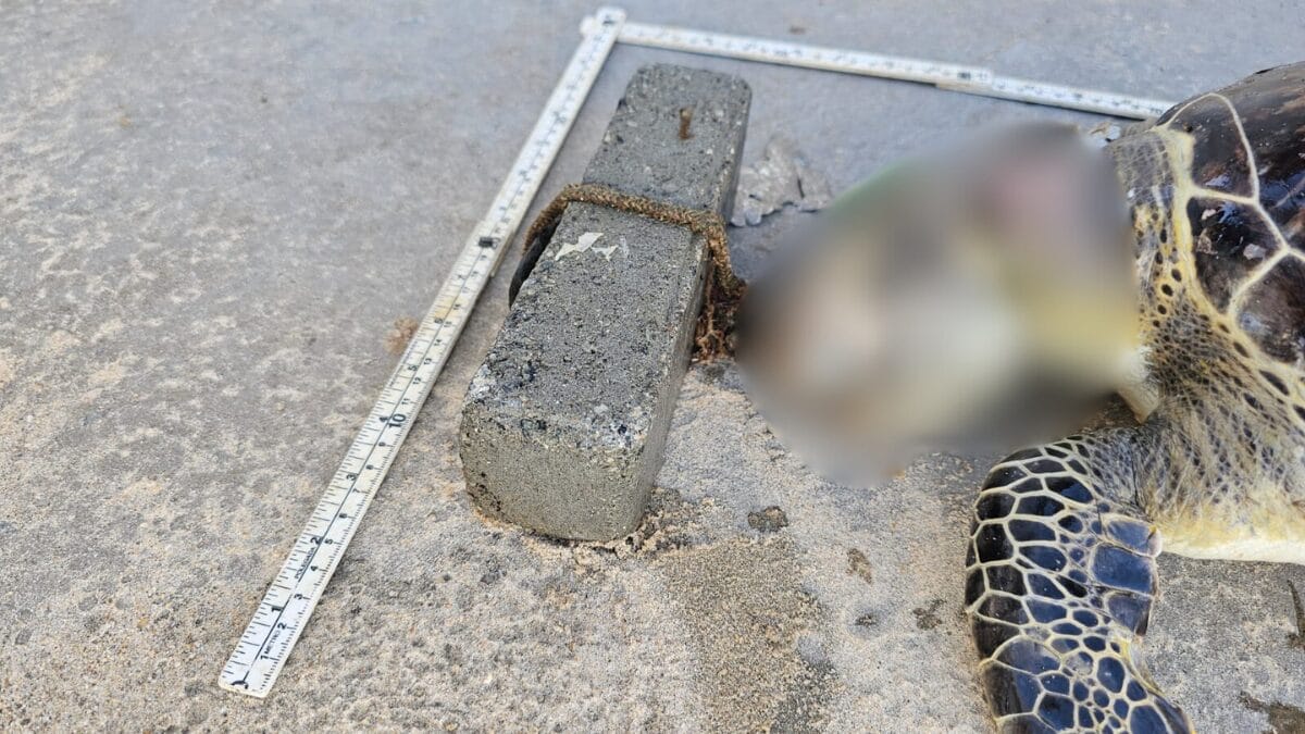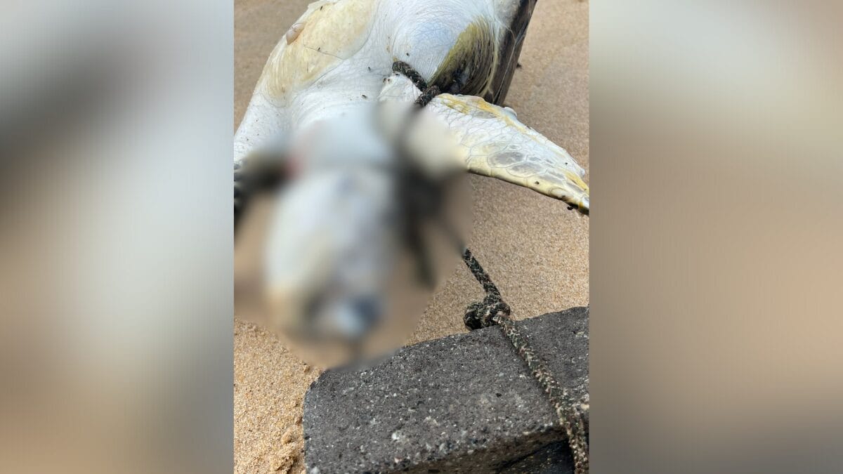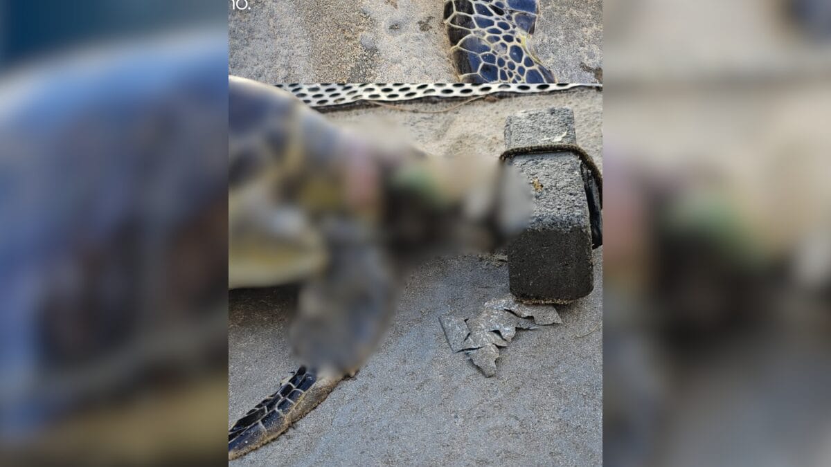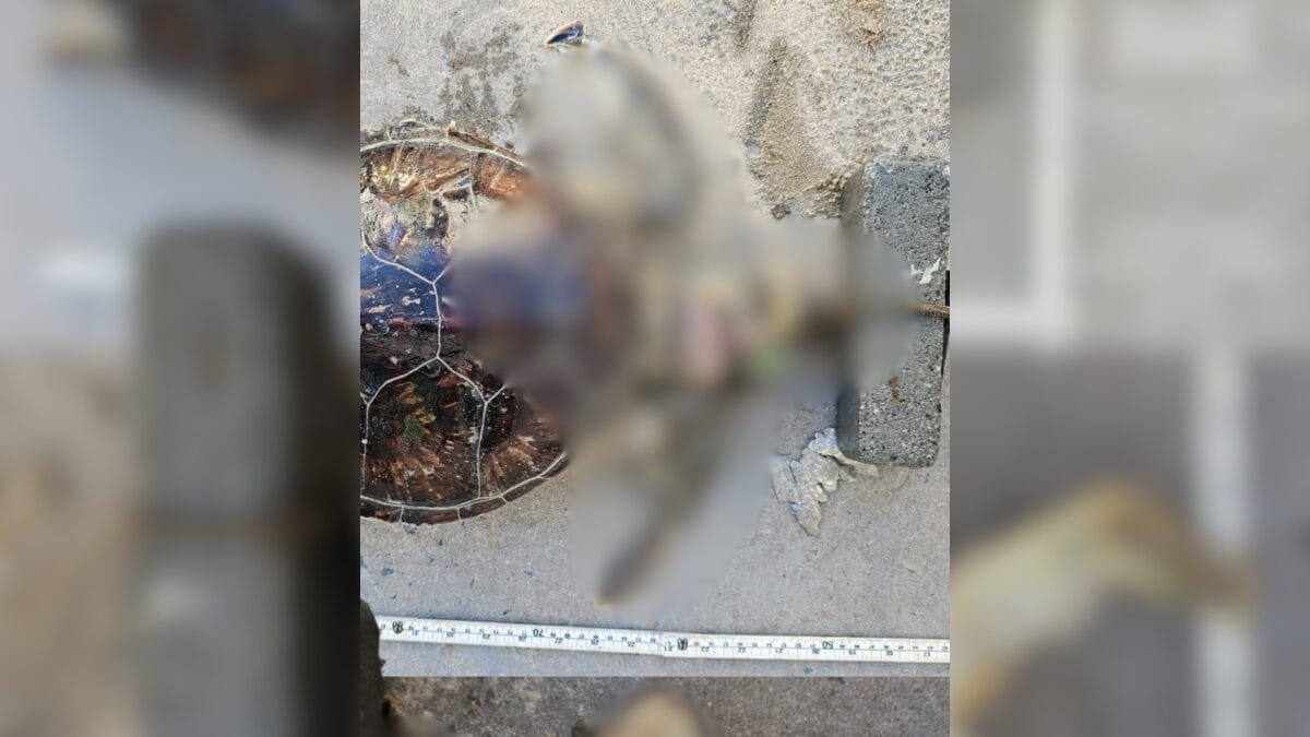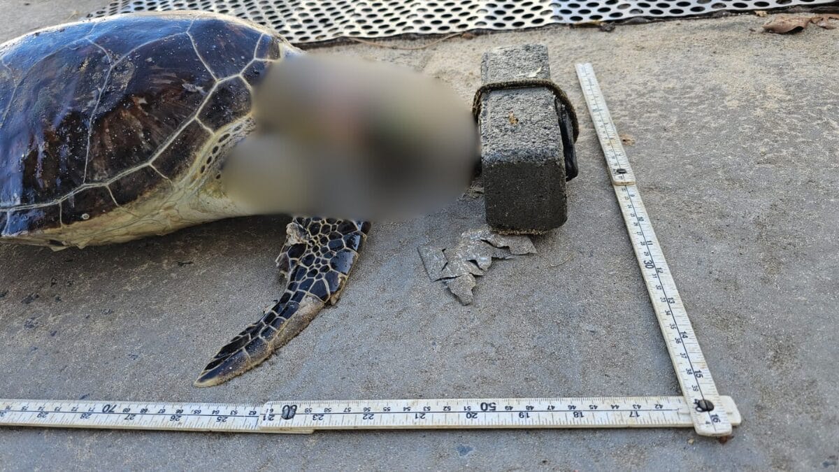 Uma tartaruga-verde (Chelonia mydas) foi encontrada morta na Praia do Plaza, em Itapema, no Norte catarinense, com um bloco de concreto amarrado ao pescoço. O animal foi localizado por pessoas que passavam pela praia no dia 18 de fevereiro, mas ganhou repercussão nesta quinta-feira (26) com a divulgação pelo Projeto de Monitoramento de Praias da Bacia de Santos da Univali nas redes sociais.