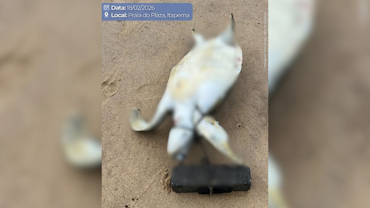 Conduzido pelo Instituto Brasileiro do Meio Ambiente e dos Recursos Naturais Renováveis (Ibama), o projeto publicou fotos do animal já morto na praia, com um bloco de concreto fixado no pescoço. Para o projeto, há “evidências claras de interação antrópica intencional, compatíveis com ato de vandalismo”.