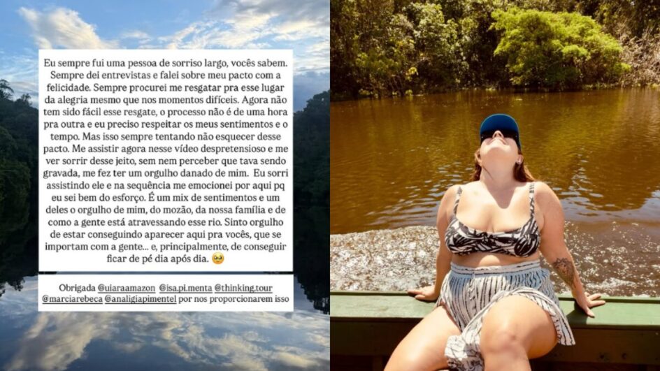 “É um mix de sentimentos e um deles o orgulho de mim, do mozão, da nossa família e de como a gente está atravessando esse rio. Sinto orgulho de estar conseguindo aparecer aqui para vocês, que se importam com a gente… e, principalmente, de conseguir ficar de pé dia após dia”, encerrou.