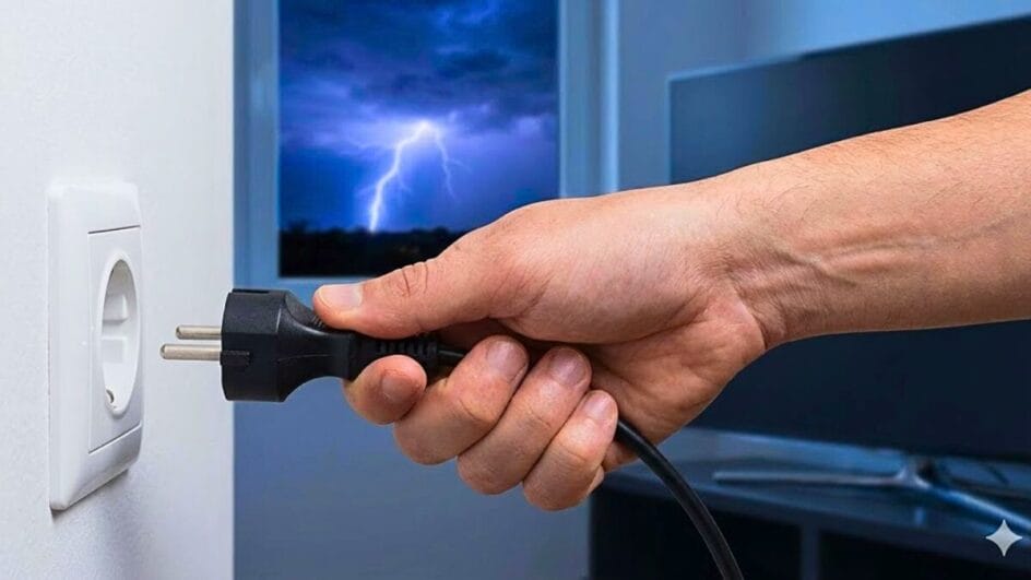 Especialistas do setor elétrico alertam que simplesmente desligar o aparelho no controle remoto ou no botão não é suficiente. A sobrecarga gerada por um raio pode viajar pela fiação e atingir os circuitos mesmo com o equipamento em “stand-by”.