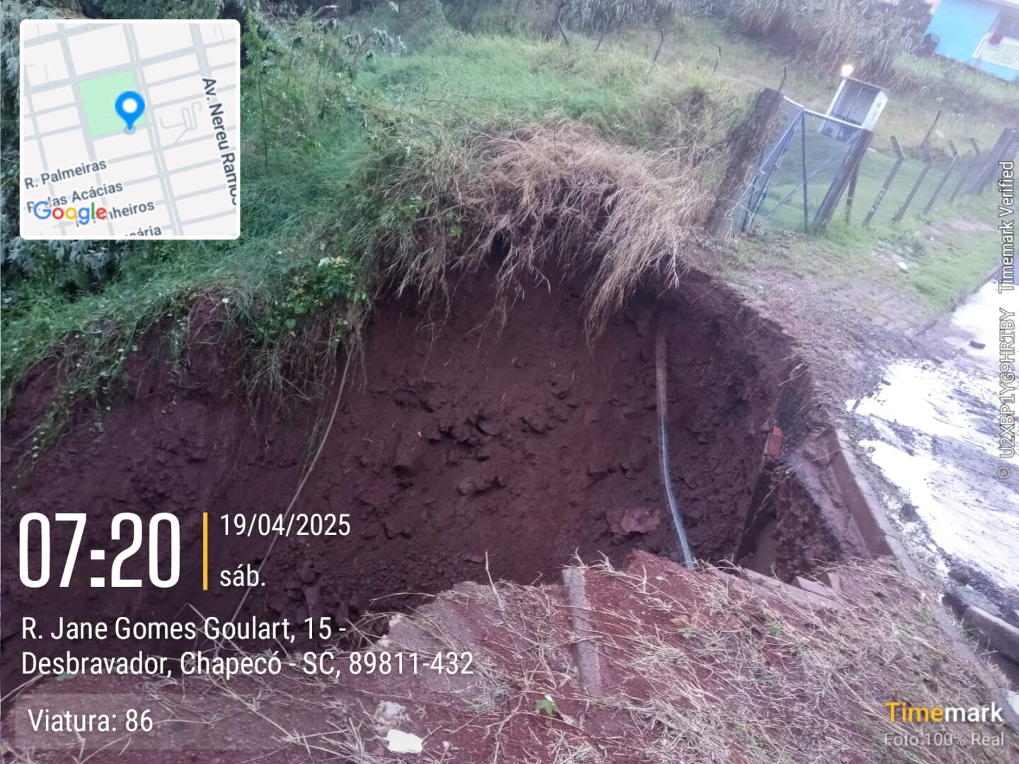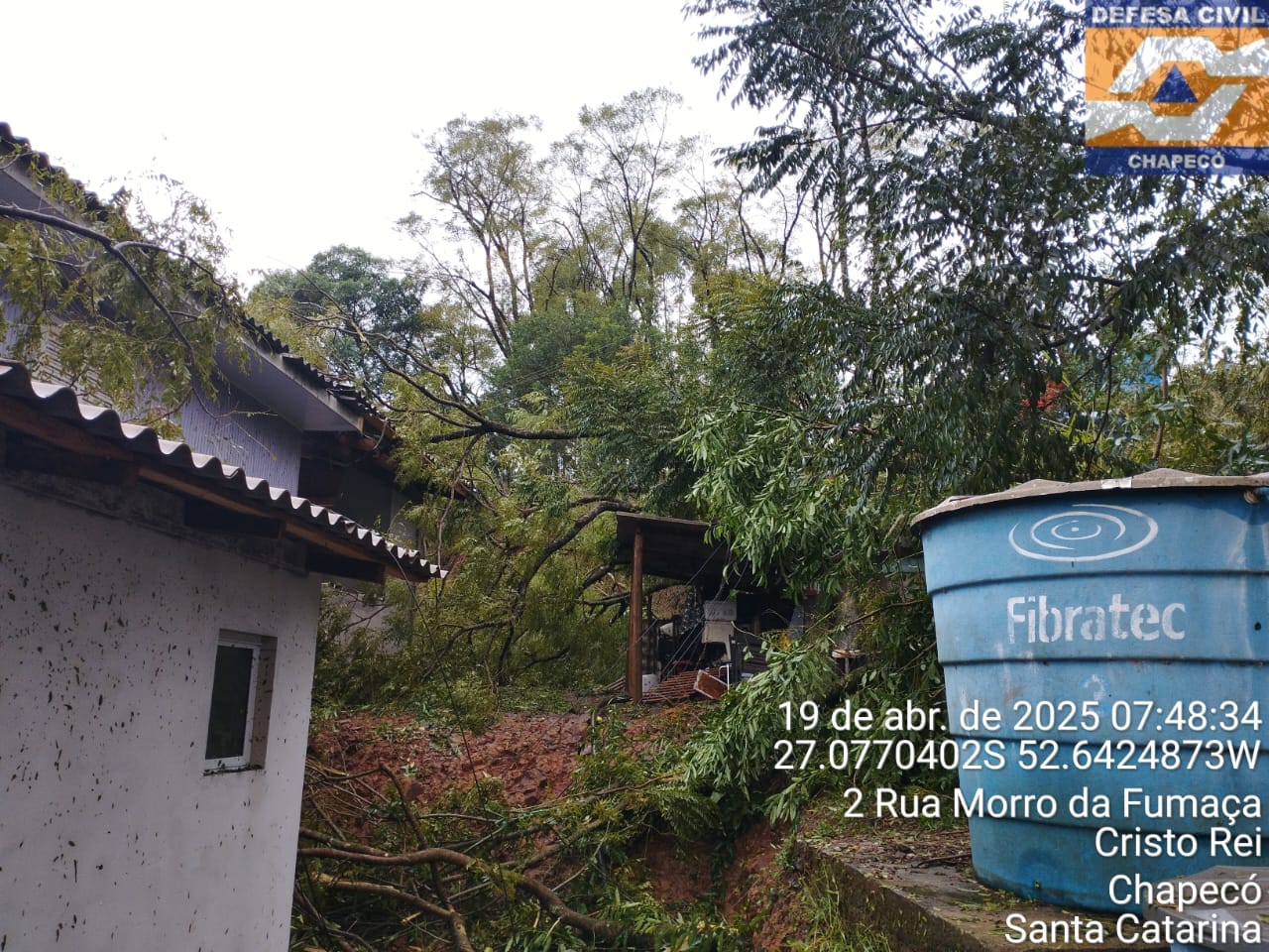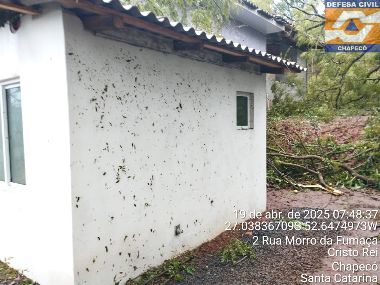 Um temporal na manhã deste sábado (19) e final da noite de sexta-feira (18) castigou cidades do Oeste catarinense. Danos foram informados pela Defesa Civil de Chapecó e Anita Garibaldi. O vento foi tão forte em Chapecó que árvores caíram e casas ficaram destelhadas. Pelo comportamento do fenômeno, a Defesa Civil do Estado avaliou que houve uma microexplosão, com ventos que chegaram a 90 km/h. Apesar dos prejuízos, não houve feridos.