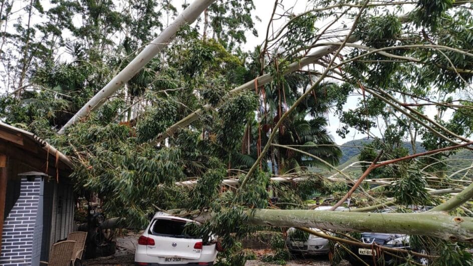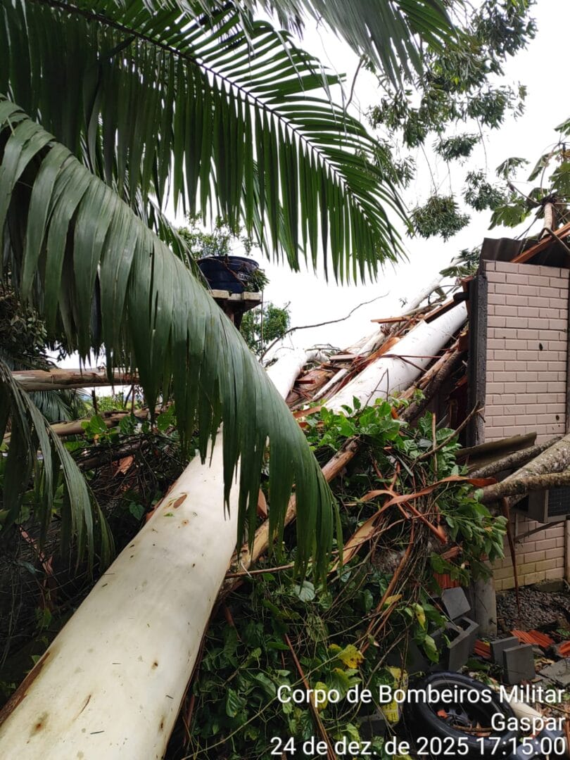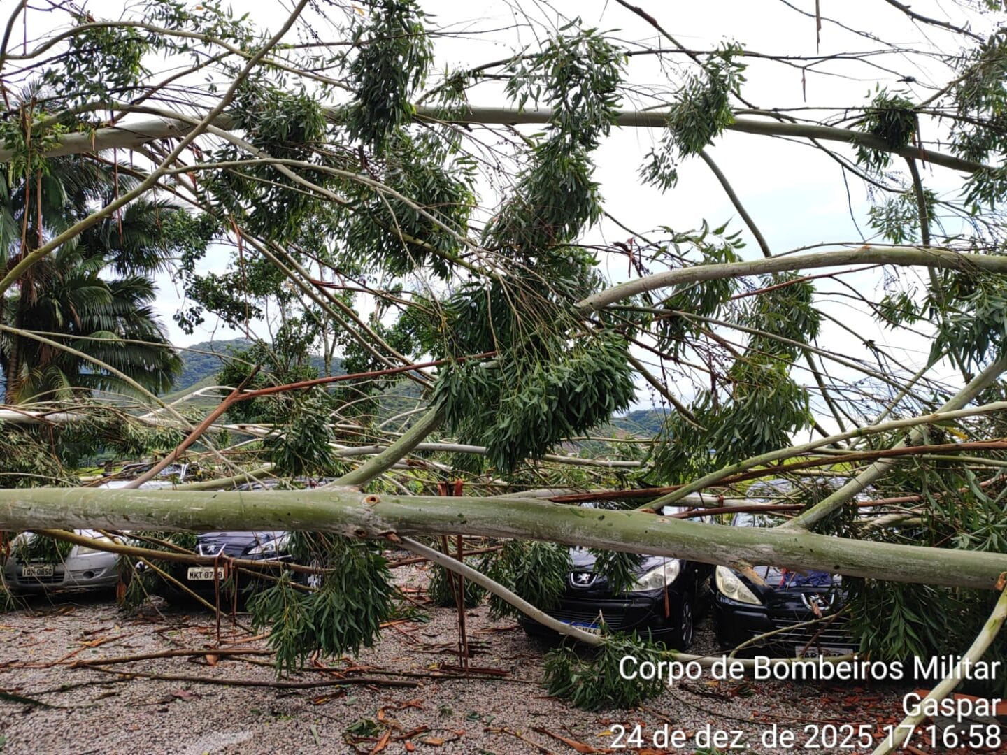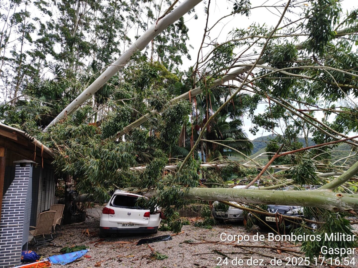 O temporal que passou pelo Vale do Itajaí na tarde de quarta-feira (24) causou estragos em Gaspar. Em uma das situações, árvores caíram sobre carros e duas casas, obrigando os moradores a deixarem os locais, contaram os bombeiros militares.