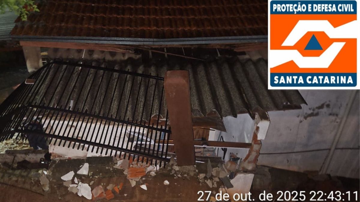Uma forte chuva acompanhada de granizo atingiu o município de Tangará, no Meio-Oeste de Santa Catarina, na noite desta segunda-feira (27), provocando alagamentos, queda de árvores e diversos prejuízos.