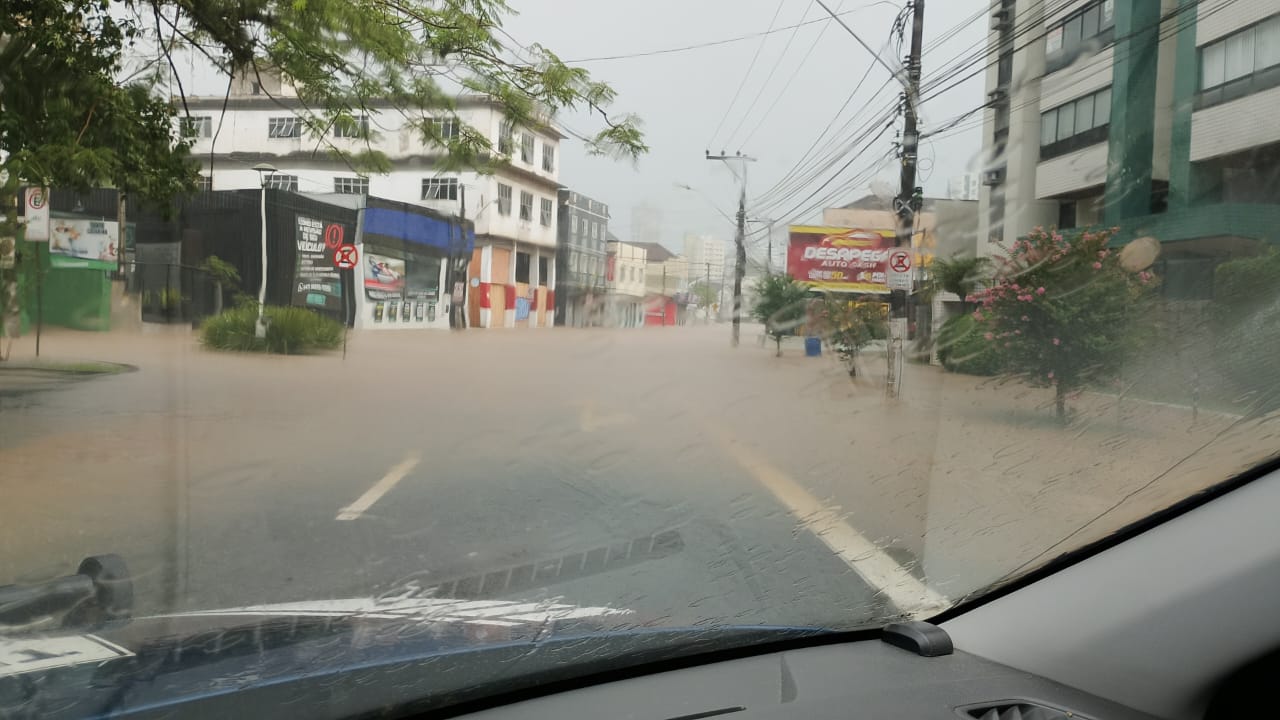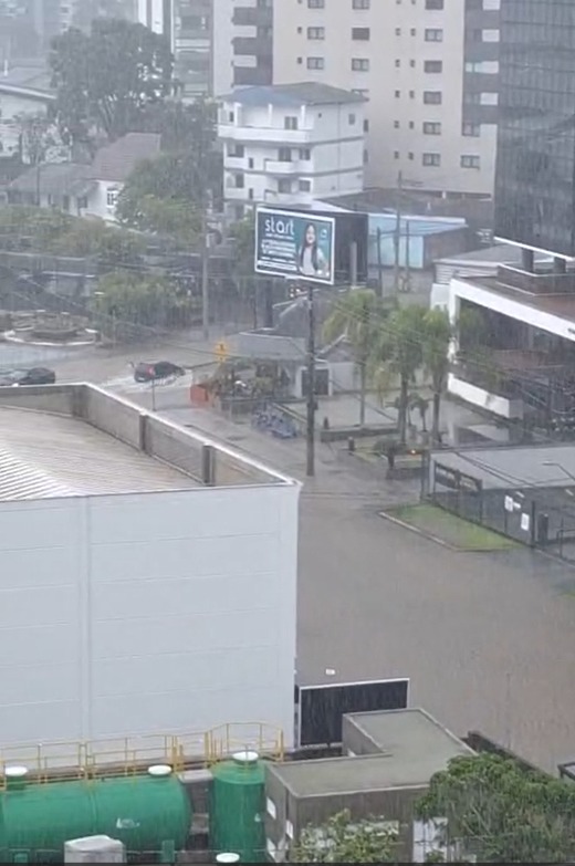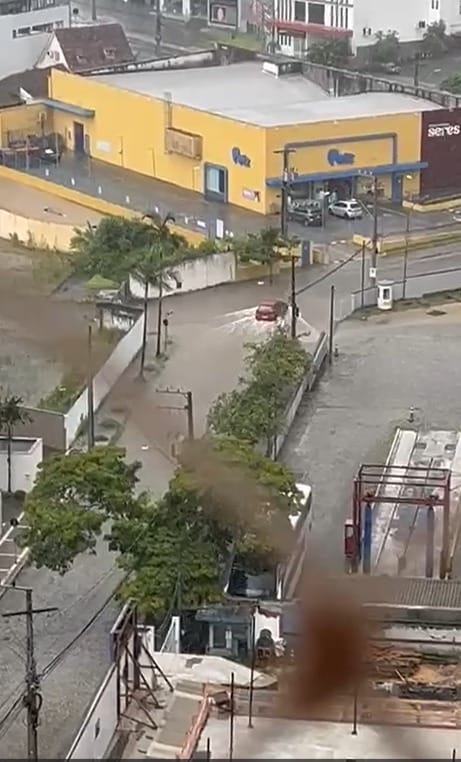Na entrada da empresa Catarinense, na Rua Iguape, perto da Furb, a água também subiu rapidamente, tomando conta da pista. O mesmo ocorreu na Rua Rio de Janeiro, na Itoupava Seca.