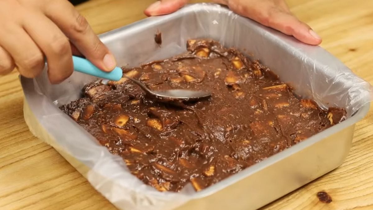 Em seguida, mexa mais um pouco e reserve. Agora, quebre alguns biscoitos de maizena e acrescente no brigadeiro. Misture bem.