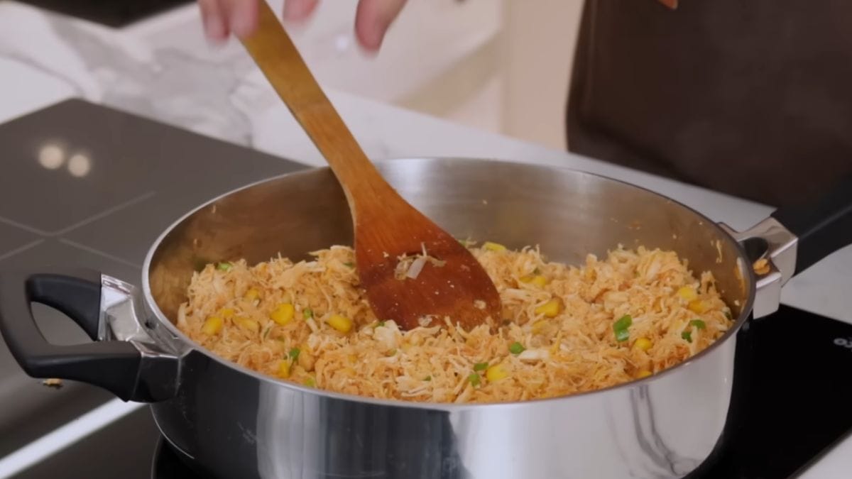 - Misture bem e finalize com cheiro verde a gosto. O recheio deve ficar soltinho, então não precisa adicionar molho extra.