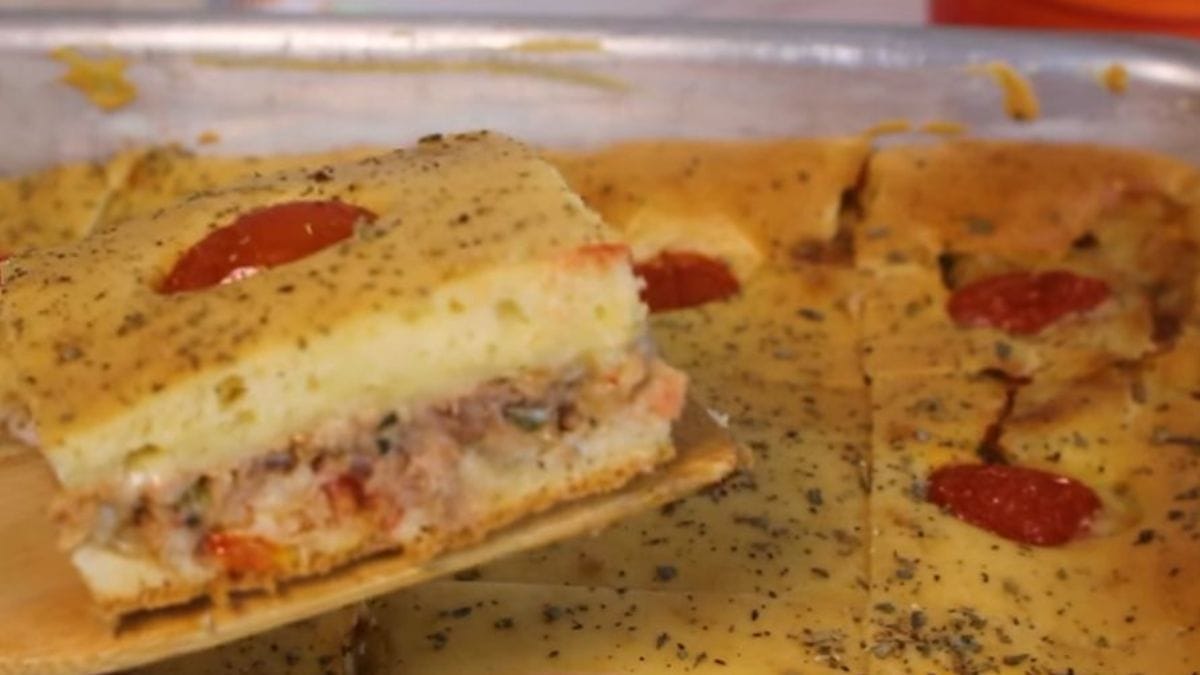 A receita é prática e saborosa. A torta pode ser consumida entre amigos e familiares. A sugestão é compartilhar essa refeição com uma bebida refrescante.
