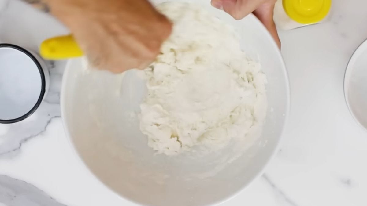 Modele a massa em uma bola, coloque dentro de um saco plástico ou envolva em filme e deixe descansar por cerca de cinco minutos.