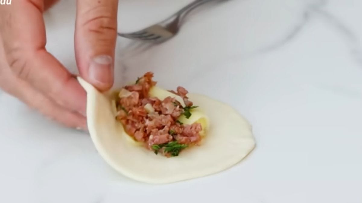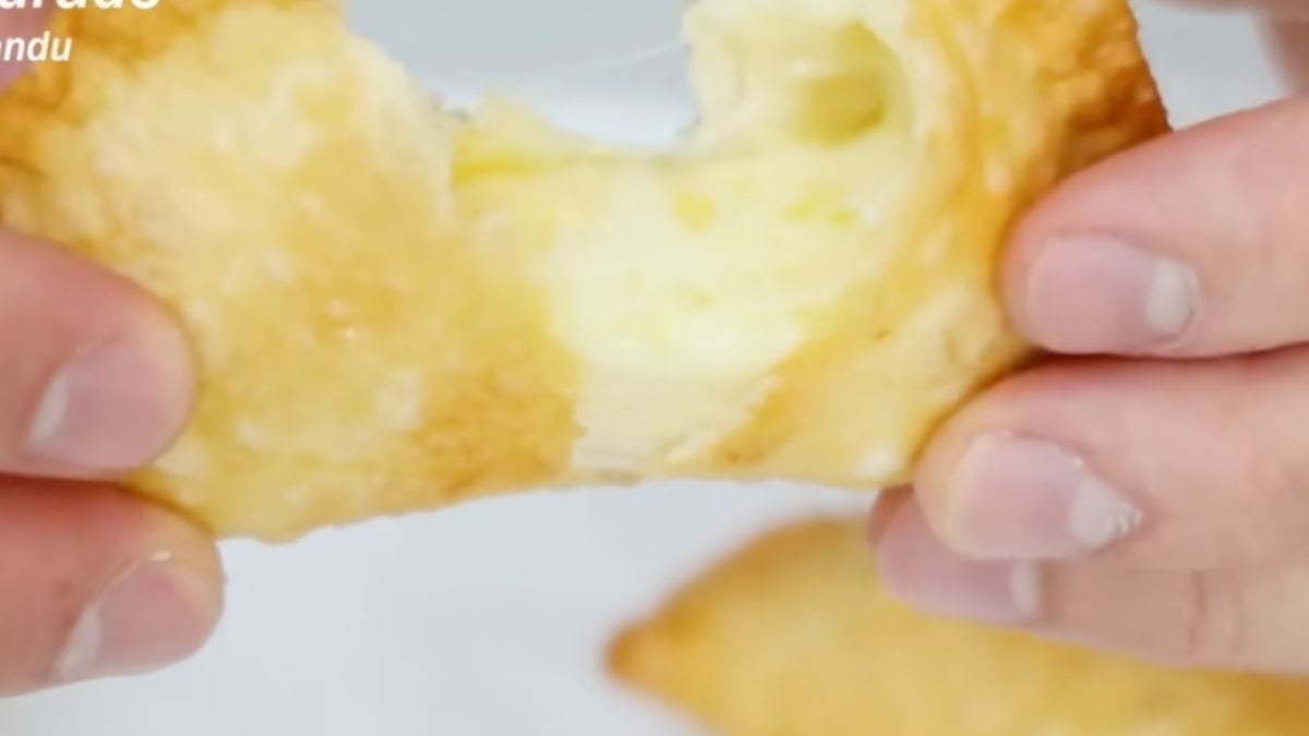 A receita leva dois ingredientes simples, que você provavelmente já tem em casa. Você pode rechear o pastel como preferir, mas a sugestão é usar ingredientes econômicos e saborosos, como queijo, presunto e tomate.