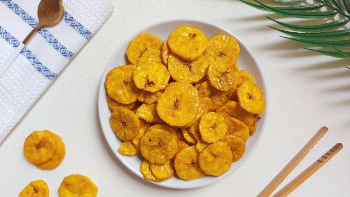 Primeiro, preaqueça a air fryer a 180°C por alguns minutos. Em seguida, lave e seque as bananas com casca e corte-as ao meio, no sentido do comprimento ou em rodelas.