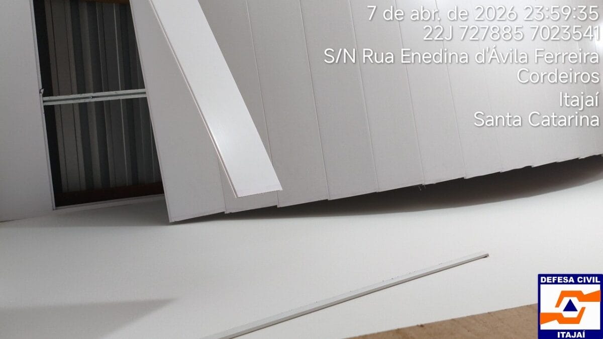 Em Itajaí, uma Unidade de Pronto Atendimento (UPA), do bairro Cordeiros, teve o telhado danificado com o temporal que atingiu a cidade na noite dessa terça e madrugada de quarta-feira (8). As fortes rajadas de vento e a chuva causaram infiltrações entre o telhado e o forro, o que quase fez a estrutura colapsar.