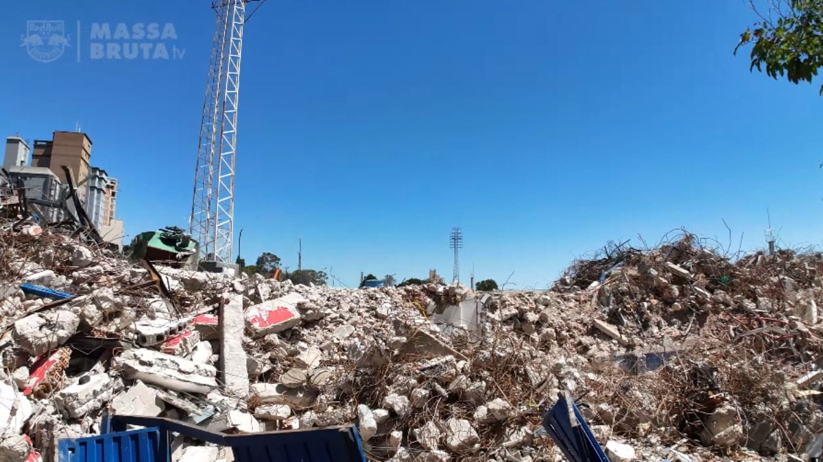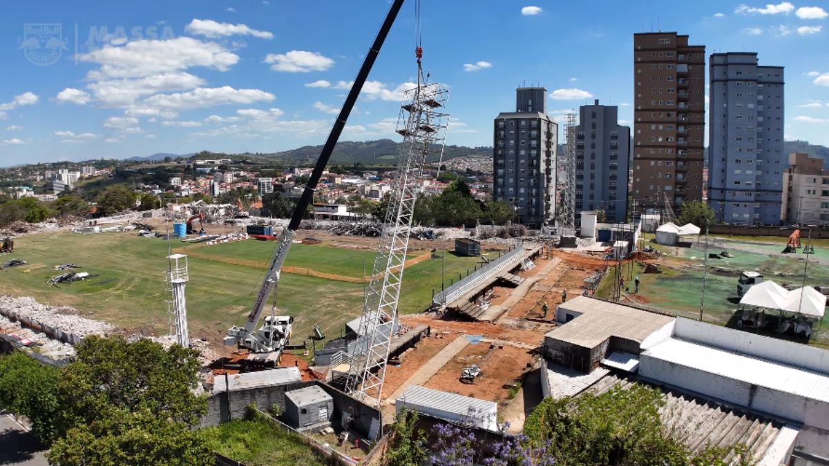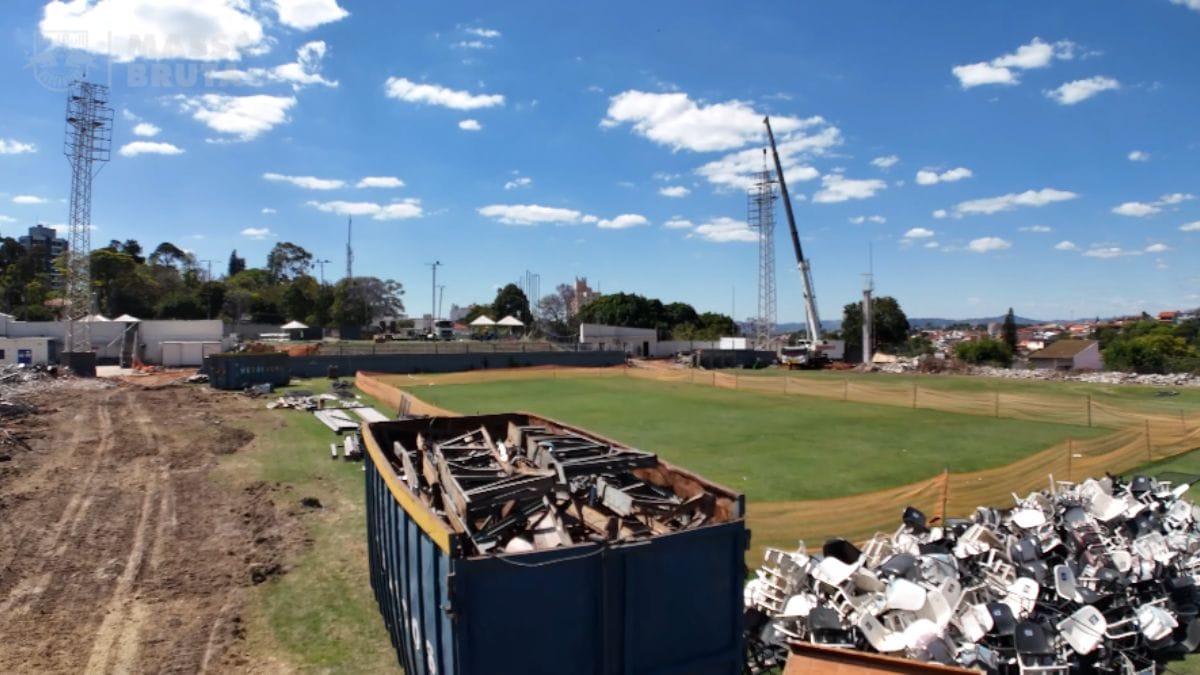As arquibancadas do estádio Nabi Abi Chedid, em Bragança Paulista, foram completamentes demolidas. A antiga casa do Bragantino, time que disputa a Série A do Campeonato Brasileiro 2025, passa por reformas e o local dará lugar a uma nova arena.