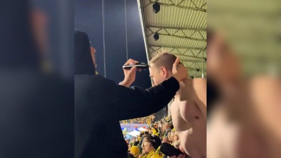 Um torcedor de um time europeu que está disputando a Champions League comemorou a sequência de cinco vitórias seguidas de uma maneira inusitada: raspando o cabelo em pleno estádio.
