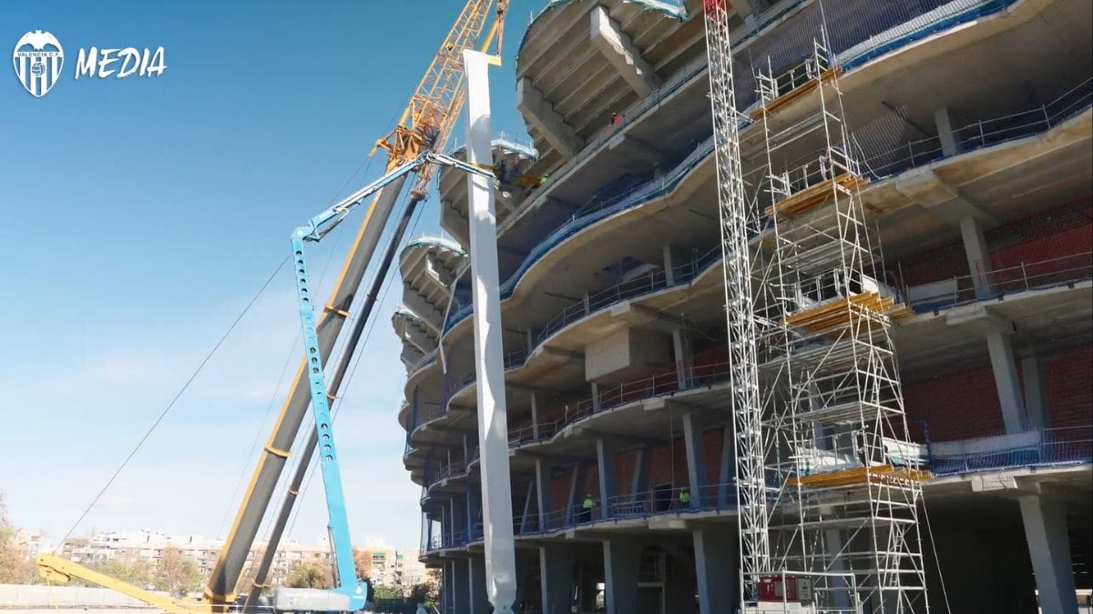 O processo de instalação da cobertura da arquibancada do estádio é considerado o mais complexo de toda a obra do Nou Mestalla. A etapa recebeu essa classificação por conta da engenharia usada para pensar na estrutura.