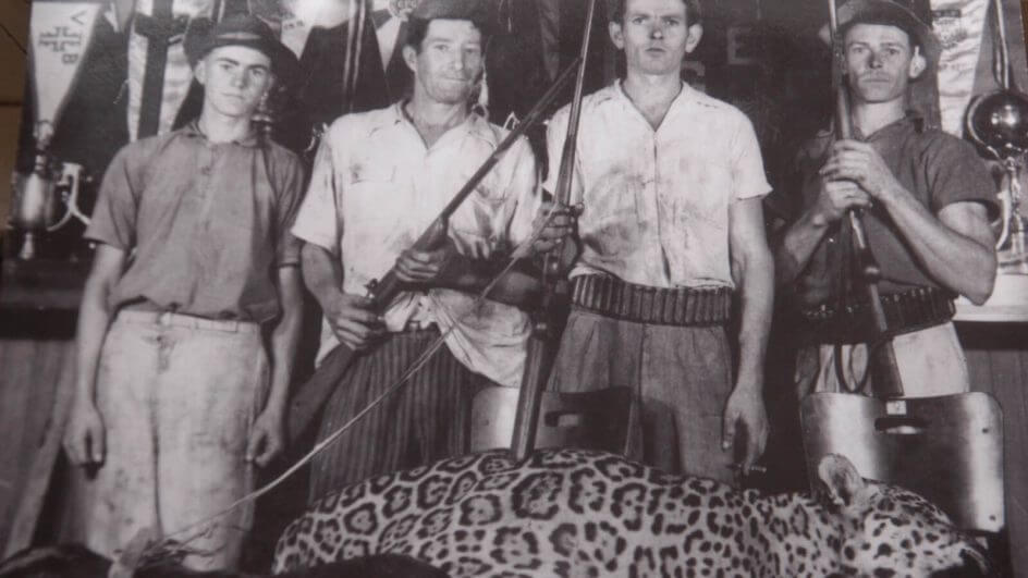 Depois que a onça foi abatida, muitos caçadores afirmavam que eram os responsáveis pelo feito. As fotos, porém, mostram apenas os quatro vizinhos e o cão junto com o animal já sem vida e fora do mata.