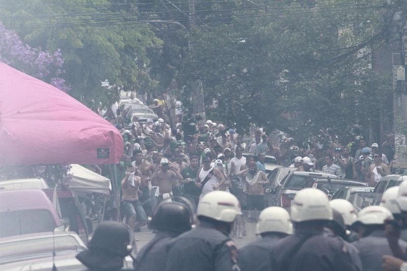 As cercanias do Allianz Parque se transformaram em zona de guerra cerca de uma hora antes da bola rolar para Palmeiras e Corinthians, após um confronto entre a Polícia Militar e integrantes de torcidas organizadas do Verdão neste domingo. A Rua Turiassu, onde está localizada uma das entradas do estádio, ficou destruída.