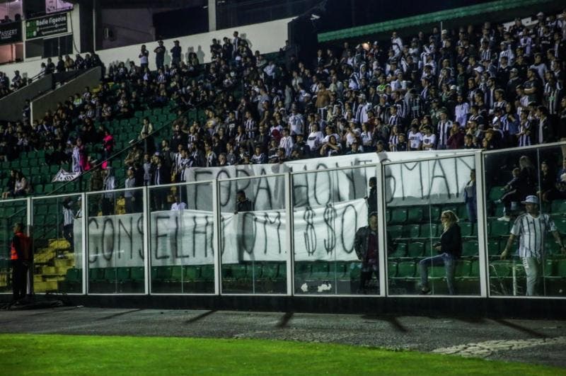 Não era um jogo qualquer do Figueirense. Na partida da 13ª rodada da Série B do Campeonato Brasileiro, aos alvinegros das arquibancadas havia algo mais que apoiar o time no Orlando Scarpelli diante do Vitória, no empate em 1 a 1. Era a oportunidade de se manifestarem sobre os acontecimentos recentes no clube. Na véspera, o técnico Hemerson Maria pediu demissão por conta da situação provocada pela crise financeira e os jogadores não treinaram para enfrentar o time baiano.