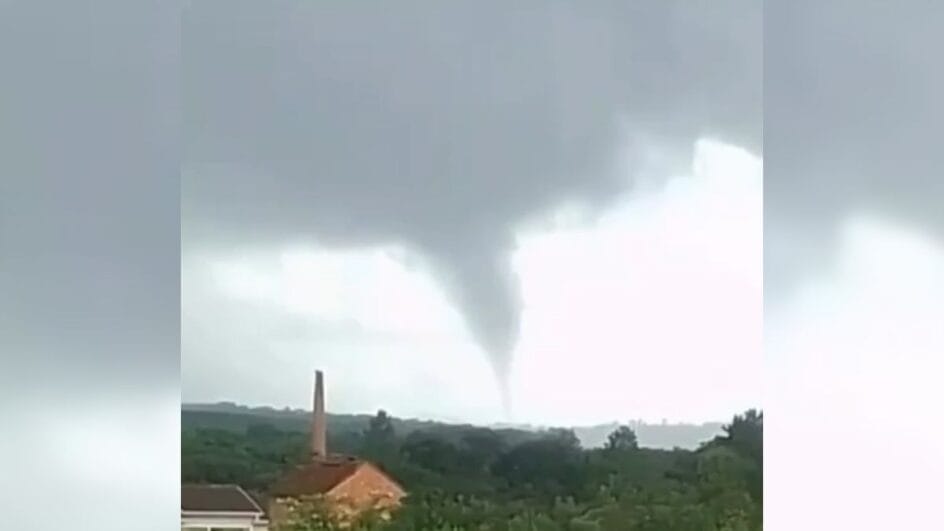 Outra possibilidade, é de que a imagem não seja de um tornado, mas sim de uma nuvem funil. Ambos têm as mesmas características visuais, porém o primeiro toca o chão e causa estragos, o segundo não.
