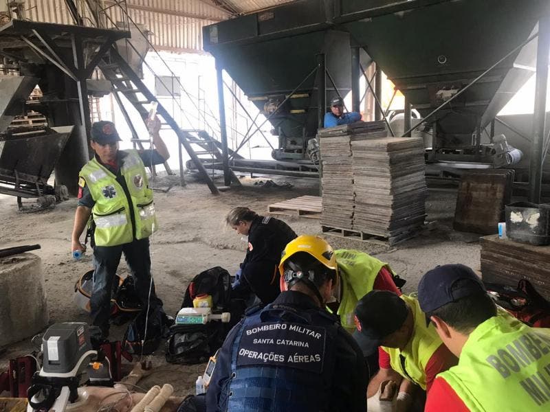 O funcionário de uma fábrica de tubos de concreto foi socorrido inconsciente, com fraturas e suspeita de traumatismo crânio-encefálico, na tarde desta quarta-feira (5), após sofrer acidente grave com a máquina de misturar cimento da empresa, em Gaspar, no Vale do Itajaí. As informações são do Corpo de Bombeiros Militar.