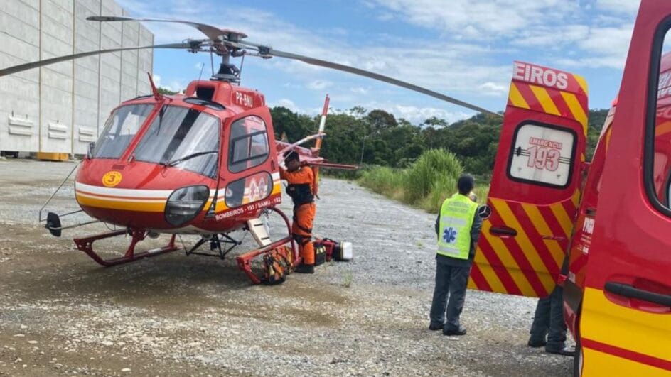 Devido à gravidade, foi solicitado um suporte avançado, por meio do Arcanjo 03. Quando os bombeiros chegaram ao local, a vítima estava caída no chão, sem capacete, sem sangramentos ou obstrução da respiração. Apesar de consciente, o trabalhador estava um pouco desorientado. Em uma segunda avaliação, os socorristas identificaram dores pelo corpo, assim como edemas e perda de um dente.