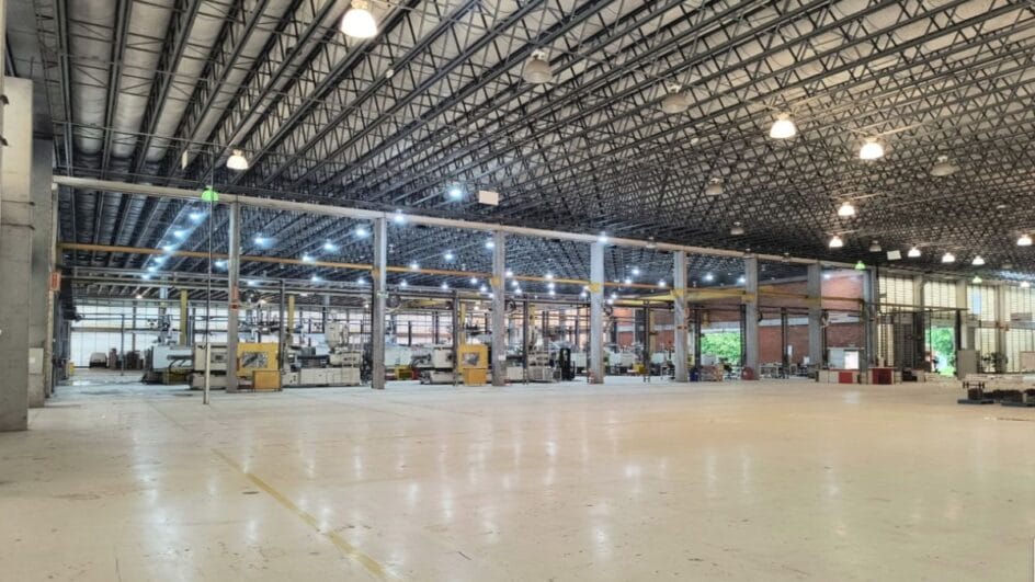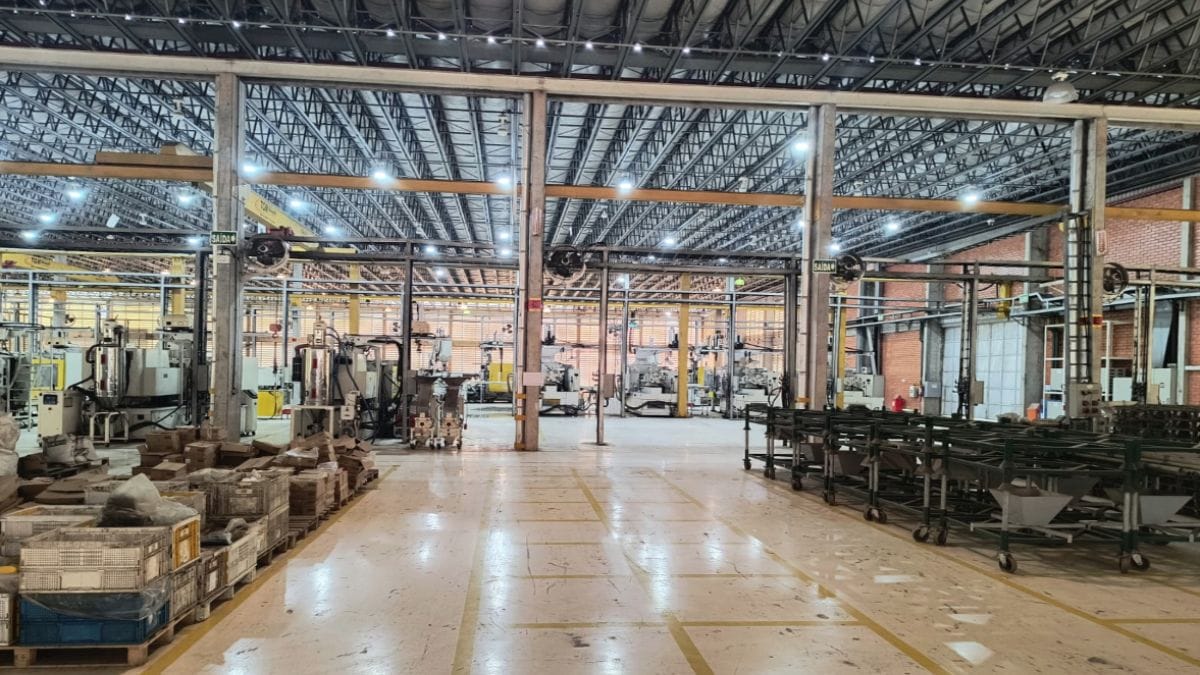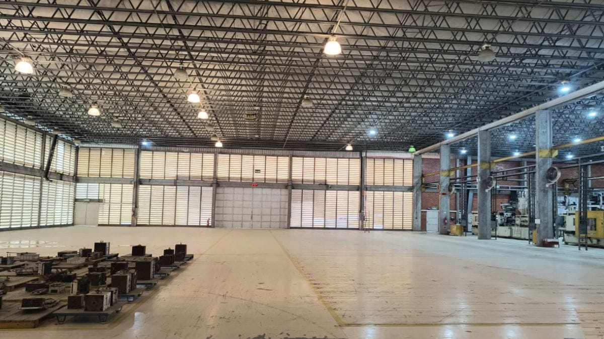 Com área total de 16,6 mil de metros quadrados e cerca de 6,6 mil metros de área construída, o complexo inclui galpões industriais estruturados, ponte rolante e maquinário incluso, como injetoras, robôs e eletroerosão.