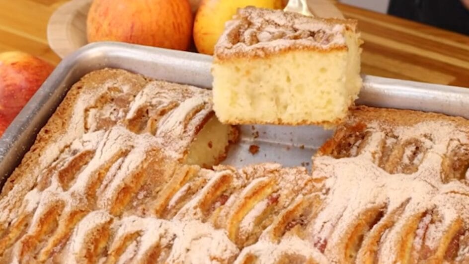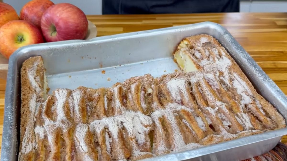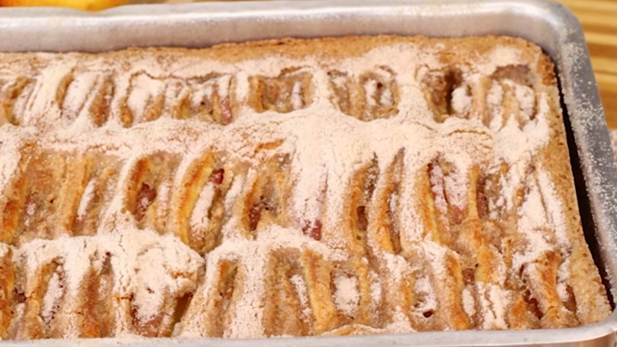 A receita é fácil de fazer e o resultado encanta pelo sabor delicioso. Feito com maçãs, o bolo é ideal para servir entre amigos e familiares.