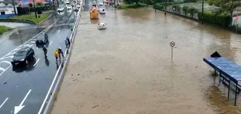 Equipes da prefeitura de Florianópolis acionaram uma escavadeira para romper a mureta e permitir a vazão da água. A enchente se deu em razão das chuvas que atingem Florianópolis nas últimas horas.