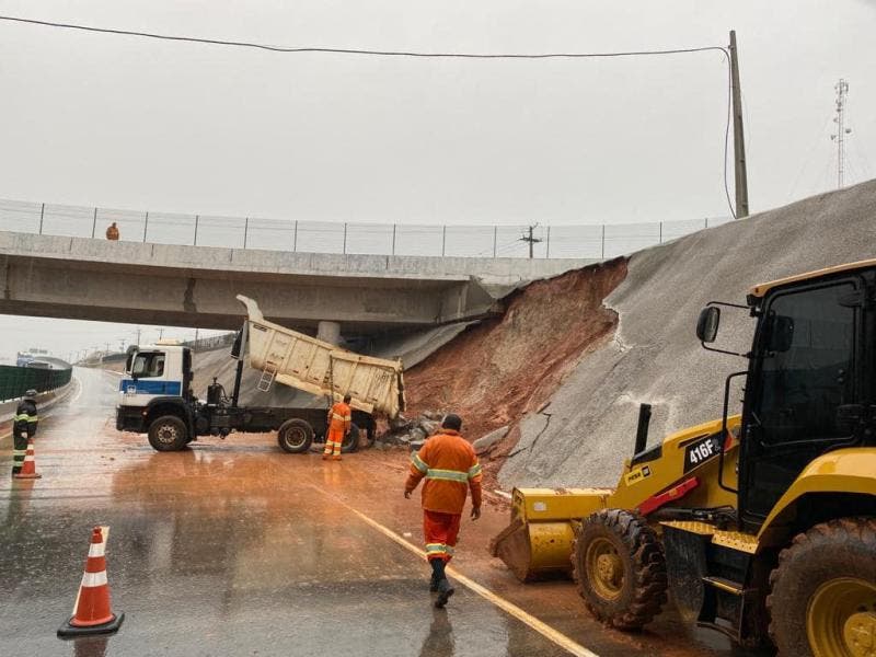 O trecho de uma obra, inaugurada pelo presidente Jair Bolsonaro (PL) há 20 dias, desmorou nesta quinta-feira (28), em Pelotas, no Rio Grande do Sul. O Estado registrou forte chuva, que fez com que uma estrutura de concreto cedesse no km 526, na BR-116.